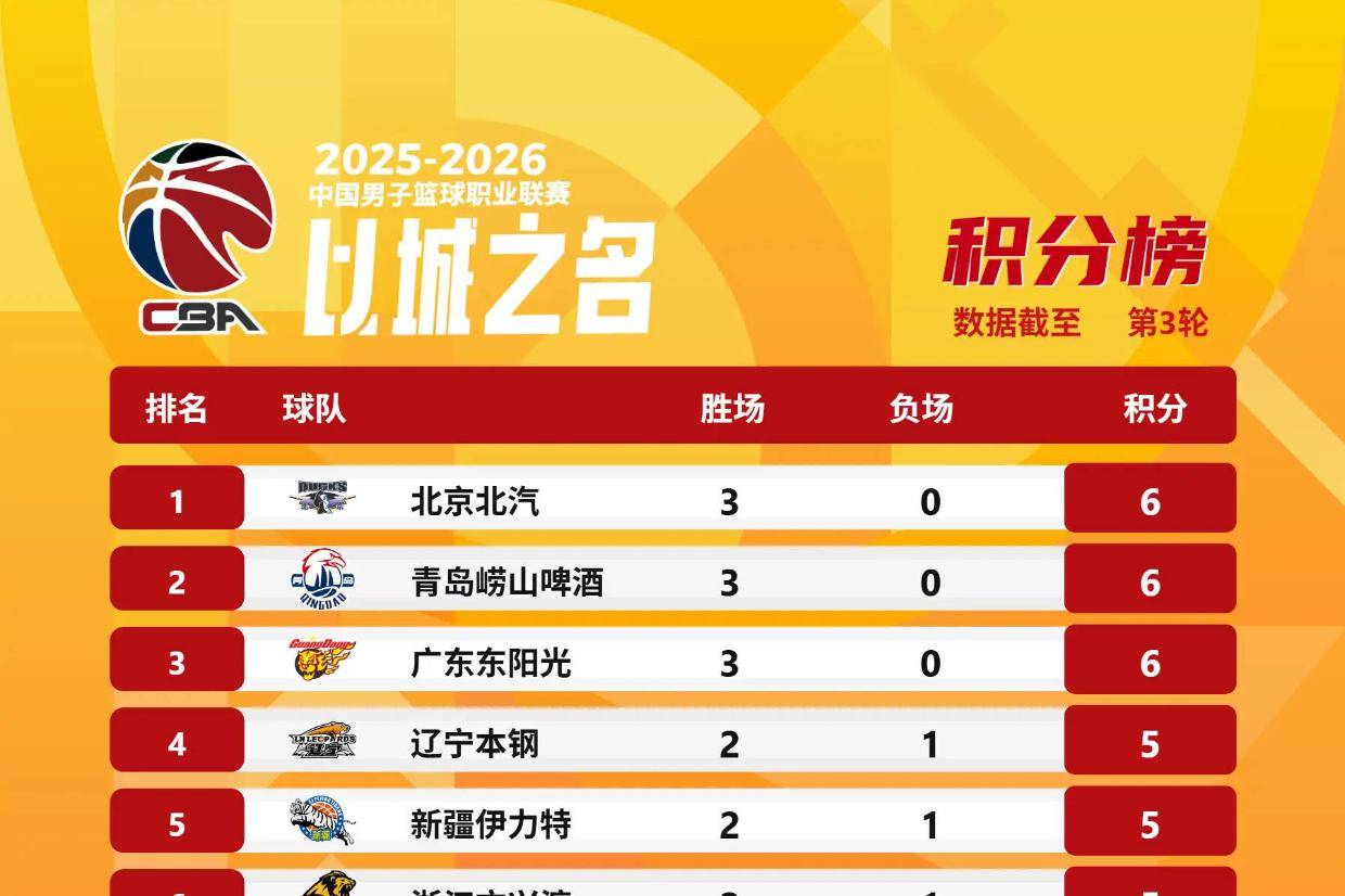 北京时间12月20日消息,CBA常规赛前三轮战罢,三支球队保持不败,分别是北京首钢、青岛国信和广东宏远,另外有4支球队未尝胜绩,浙江稠州3连败垫底令人唏嘘!